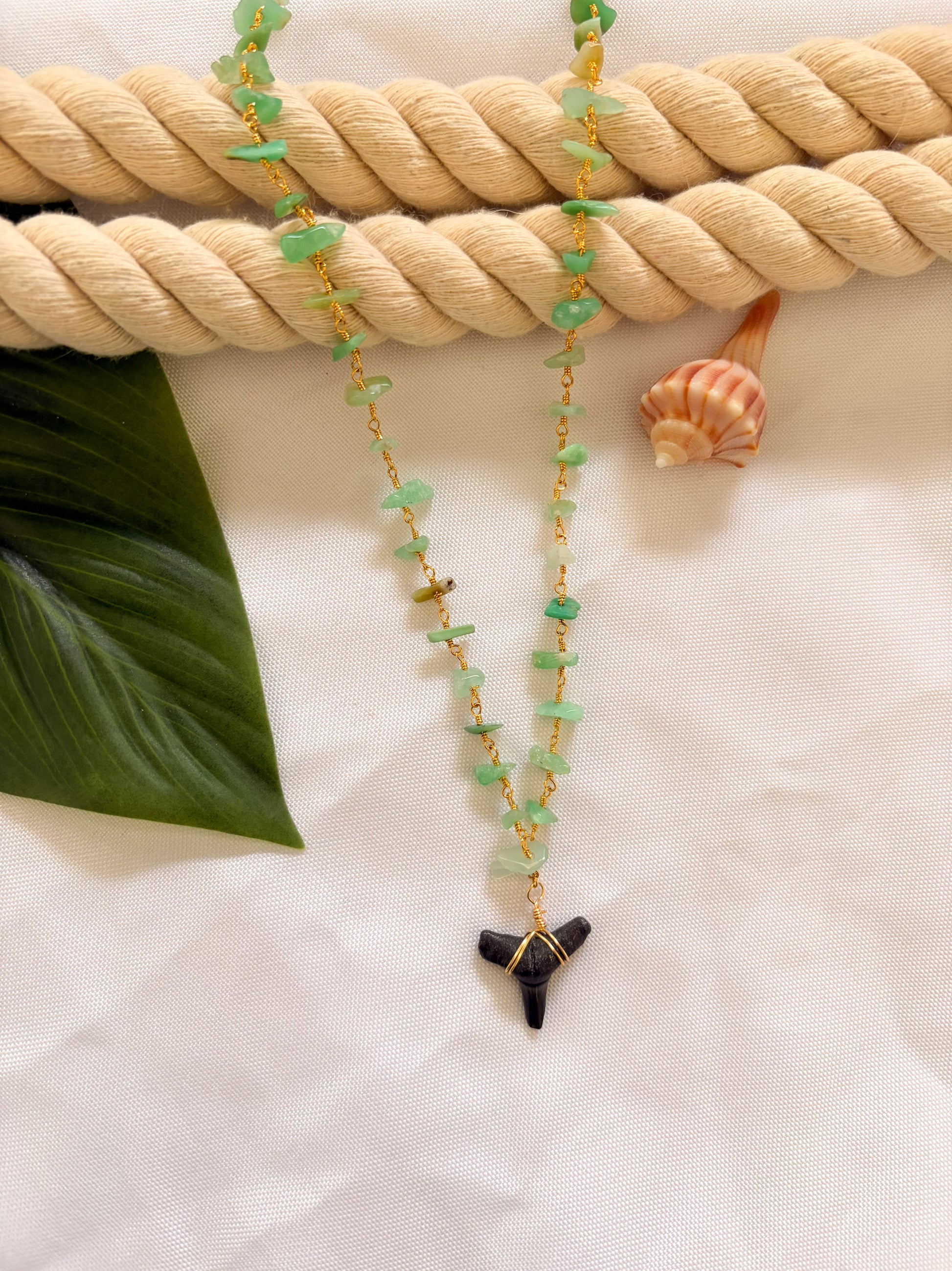 Sea Glass Glow – Chrysoprase Chip Shark Tooth Necklace