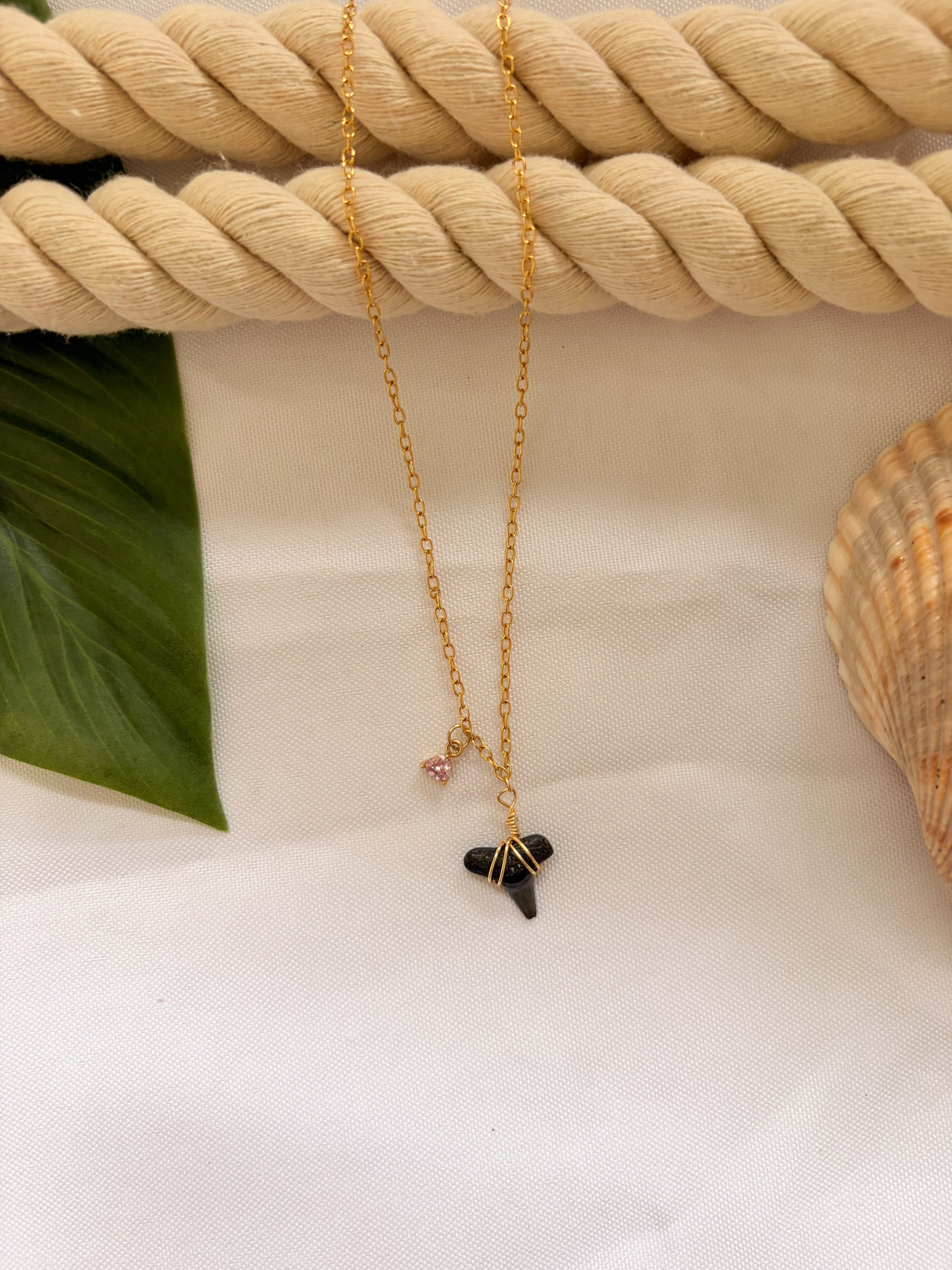 šø Details: 18k gold filled, waterproof, pink crystal charm, real shark tooth